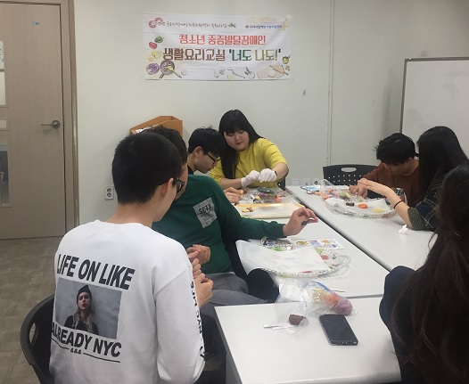 청소년 중증발달장애인 생활요리교실 너도, 나도 수요일반 5회기(마지막 회기)를 진행하였습니다. 약 한 달간 재미있게 다양한 요리를 배웠던 것 같아요~ 만든 쿠키는 어버이날 기념 부모님, 활동보조선생님께 전달하였습니다~