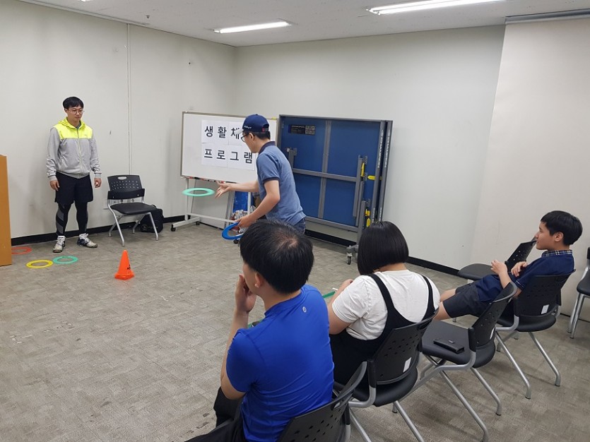 장애인 생활체육 프로그램 (6회기) 페이지 정보 작성자 관리자 댓글 0건 조회 2,356회 작성일 19-05-16 00:21 목록 본문 페이스북 공유 트위터 공유 구글+ 공유 장애인 생활체육 프로그램 6회기 진행하였습니다. 간단한 체조와 보치아볼, 플라잉디스크를 활용하여 사고력, 집중력 기르기 진행하였습니다~^^ 이전글장애인 생활체육 프로그램 (7회기) 19.05.22 다음글청소년 생활요리교실(수요일반 5회기)_마지막 회기 19.05.09