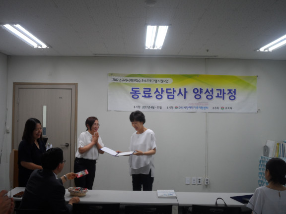 2017 동료상담사 양성과정 15주차 수료식 페이지 정보 작성자 김아롬 댓글 0건 조회 2,157회 작성일 17-07-19 00:20 목록 본문 페이스북 공유 트위터 공유 구글+ 공유 이전글몸만들기 성인장애인 체형교정 P.T 프로그램 2주차 (목) 17.07.20 다음글몸만들기 성인장애인 체형교정 P.T 프로그램 2주차 (화) 17.07.19