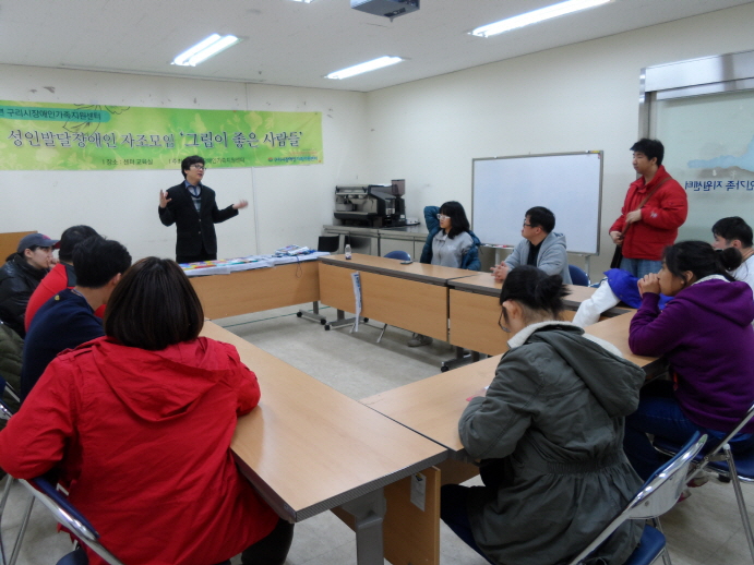 그림이 좋은 사람들 <자조모임 5회기> 페이지 정보 작성자 이윤옥 댓글 0건 조회 2,153회 작성일 14-04-09 00:20 목록 본문 페이스북 공유 트위터 공유 구글+ 공유 이전글부모교육 (발달장애인법안 설명회> 14.04.09 다음글그림이 좋은 사람들 <자조모임 3회기> 14.04.09