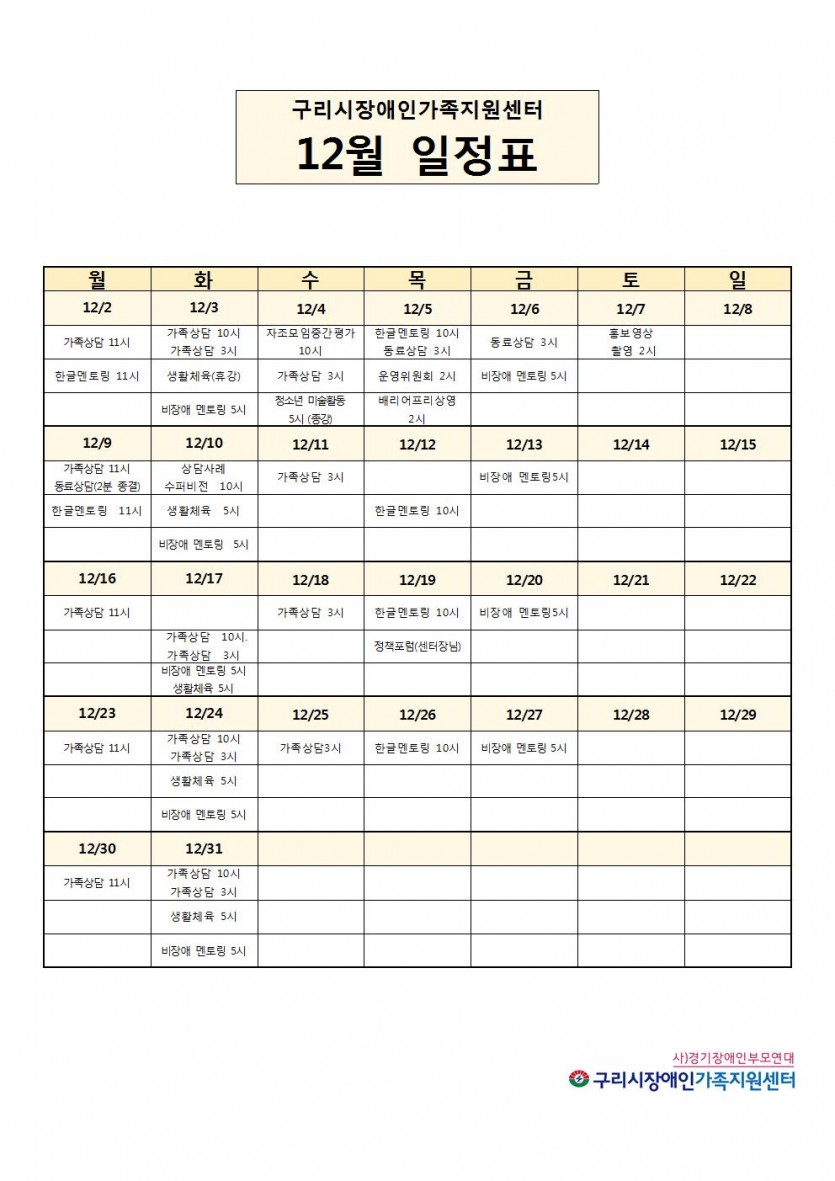 12월 센터일정표 페이지 정보 작성자 관리자 댓글 0건 조회 9,432회 작성일 19-12-03 00:18 목록 본문 페이스북 공유 트위터 공유 구글+ 공유 이전글센터 휴무일 공지(12/25, 2020년 1/1) 19.12.12 다음글11월 센터일정표 19.11.05 댓글 0 댓글목록 등록된 댓글이 없습니다.