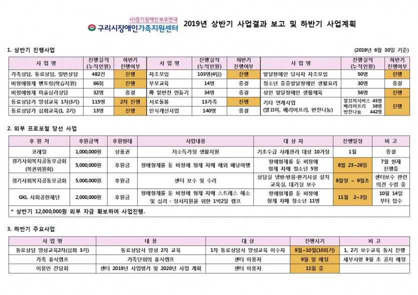 2019년 상반기 사업결과 보고 및 하반기 사업계획 페이지 정보 작성자 관리자 댓글 0건 조회 8,889회 작성일 19-07-30 00:18 목록 본문 페이스북 공유 트위터 공유 구글+ 공유 이전글8월 가치봄 상영회 참여접수(마감) 19.08.28 다음글7월 센터일정표 19.07.01 댓글 0 댓글목록 등록된 댓글이 없습니다.