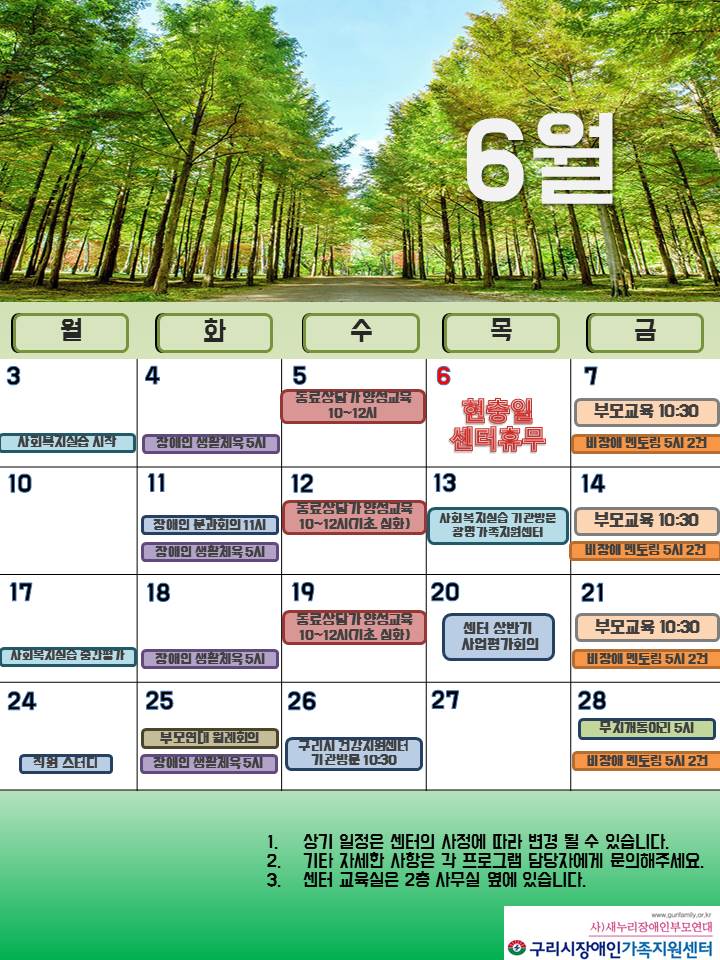 6월 센터일정표 페이지 정보 작성자 관리자 댓글 0건 조회 8,528회 작성일 19-06-03 00:18 목록 본문 페이스북 공유 트위터 공유 구글+ 공유 이전글센터 휴무일 공지(6/6) 19.06.03 다음글(연기) 2019년 발달장애인을 위한 성교육 19.05.24 댓글 0 댓글목록 등록된 댓글이 없습니다.