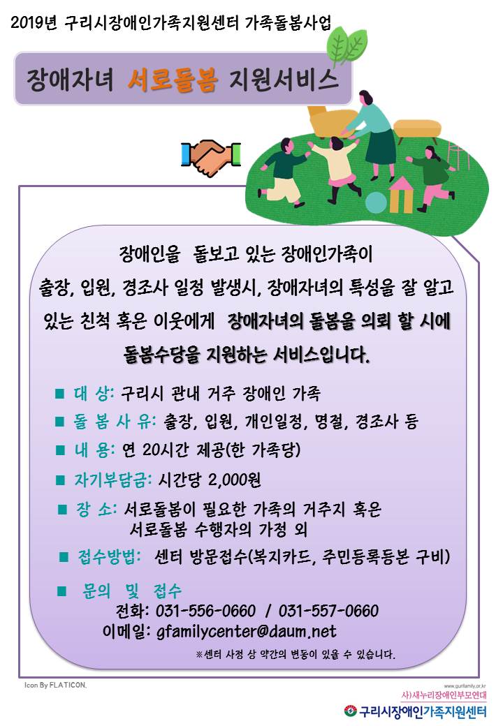가족돌봄사업으로 서로돌봄서비스 사업을 실시하오니 많은 관심과 참여부탁드립니다.
