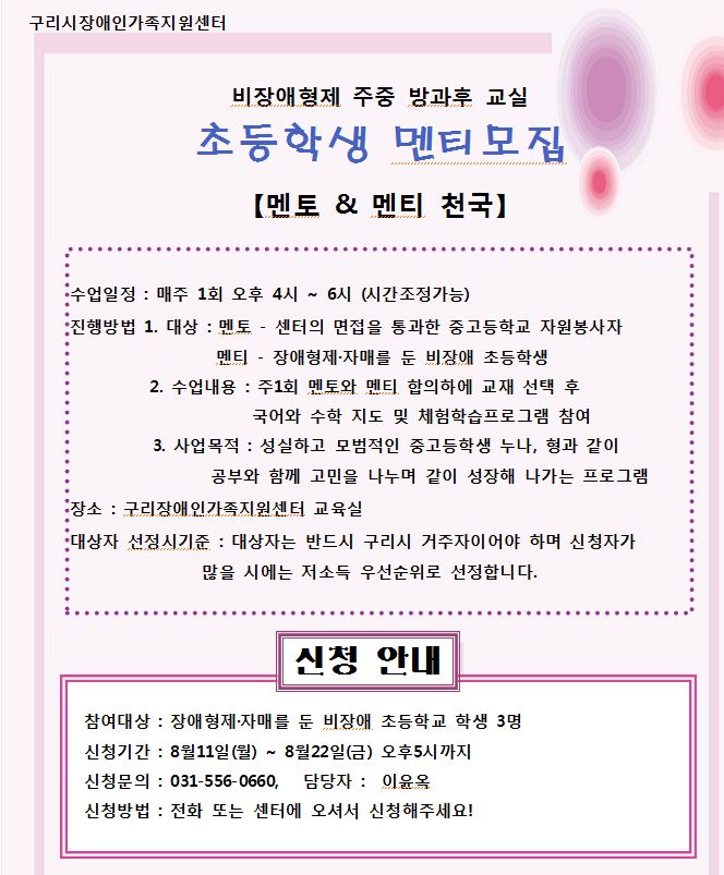 <멘토&멘티천국> 초등학생 멘티모집 > 센터알림