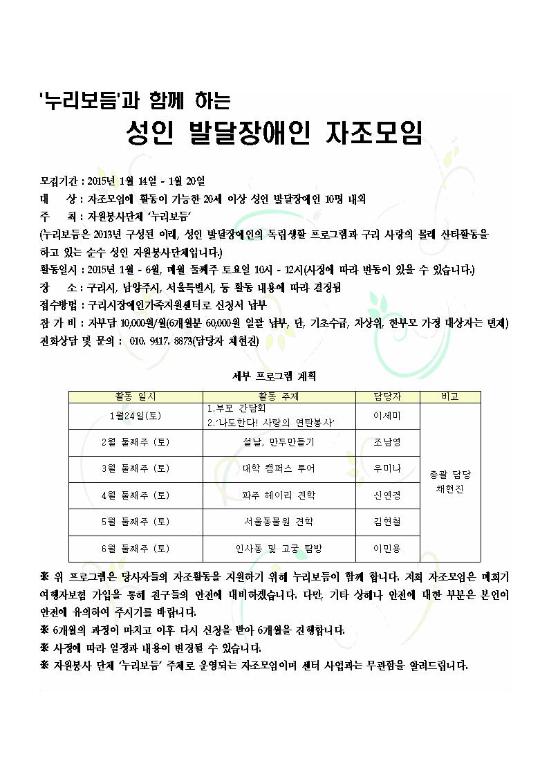 누리보듬과 함께 하는 성인 발달장애인 자조모임 > 센터알림