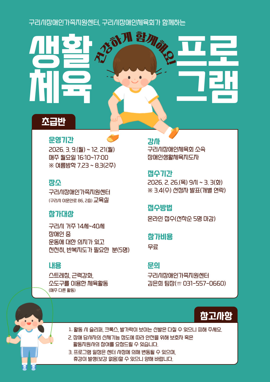 • 2026년 생활체육교실 "초급" 참여자 모집