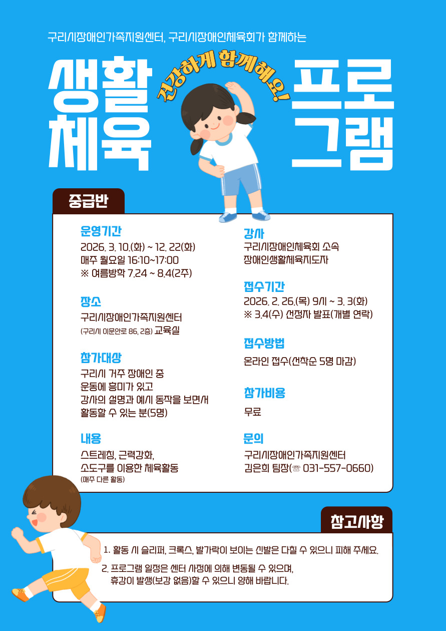 • 2026년 생활체육교실 "중급" 참여자 모집