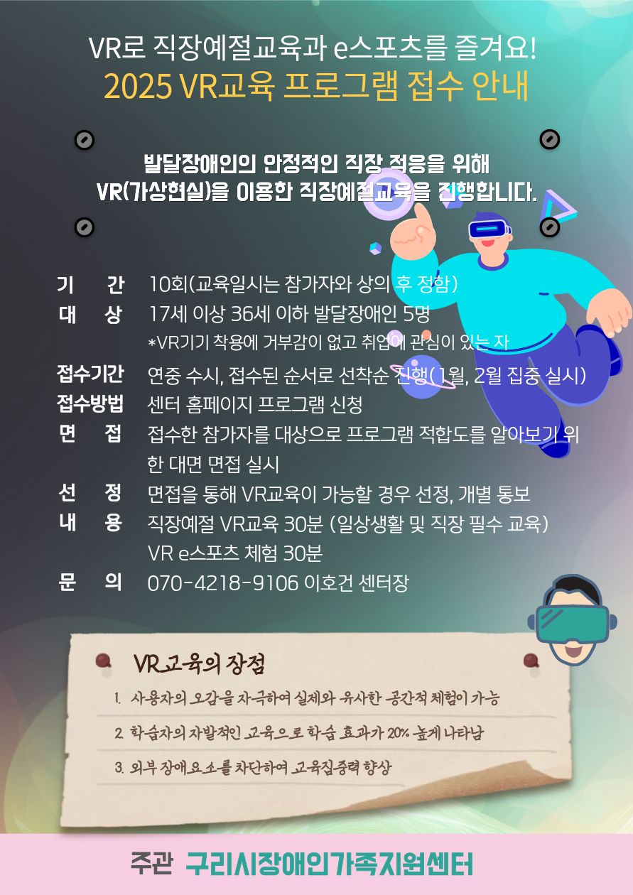 • 2026 발달장애인 직장예절 함양을 위한 VR교육 프로그램 신청자 접수